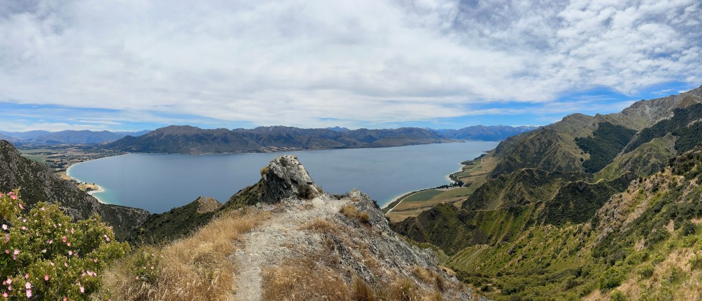 Tuesday 19 December – Joyful, wonderful day walking up up up above Lake Hāwea along the Breast Hill Track.