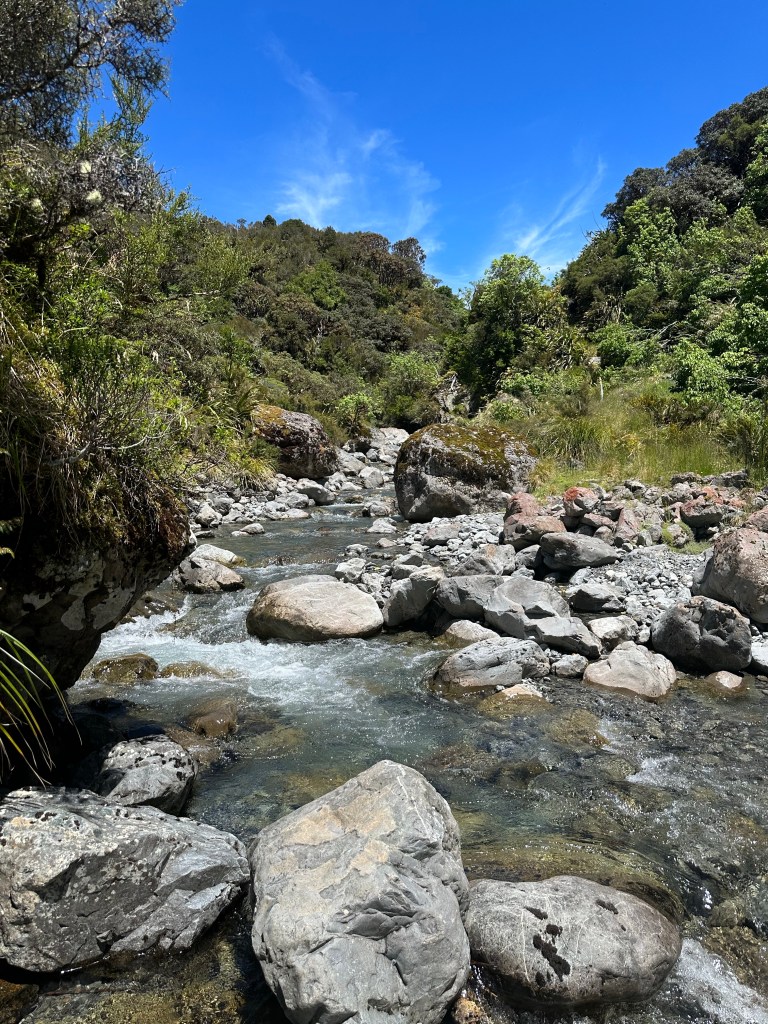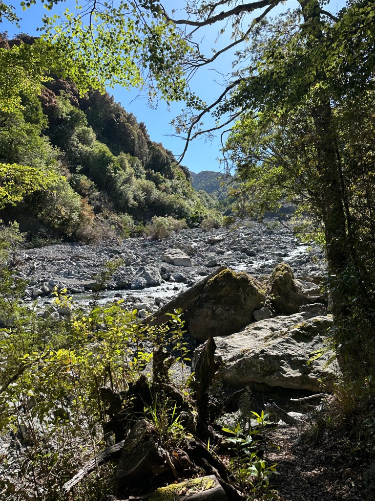 The first 4km of track to the Taramakau swingbridge alternated between beautiful forest and rocky river bed.