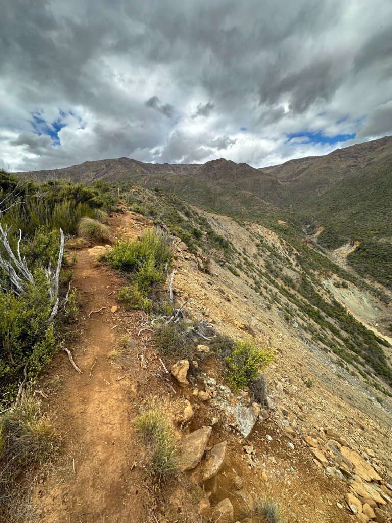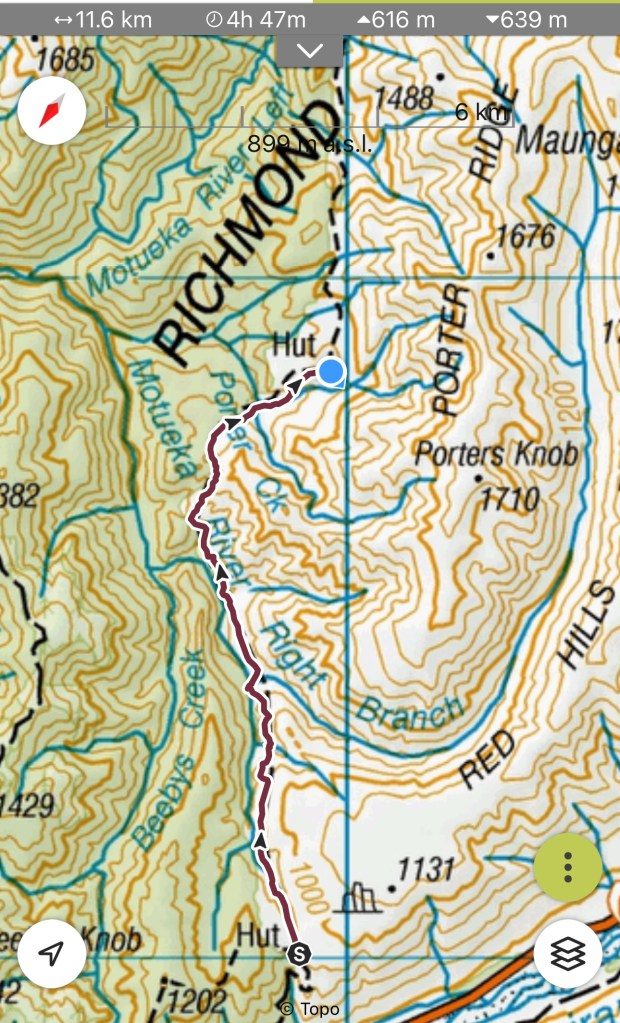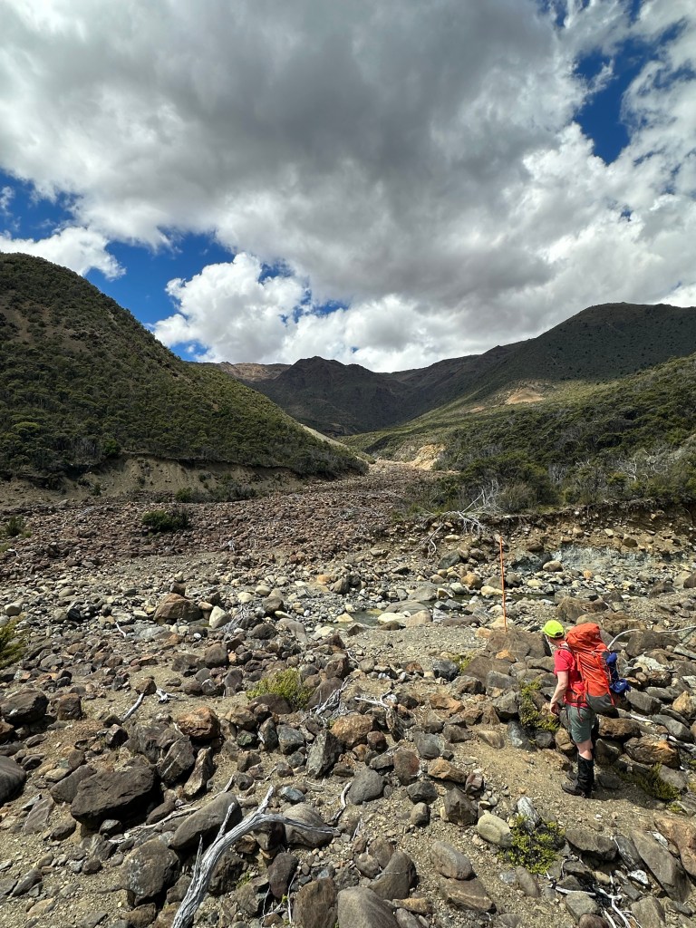 Monday 22 January – Gorgeous tramp over tussock, through beech forest and flowering manuka, over boulder fields/ dry creek beds, up and down and up and down…. Loved it!