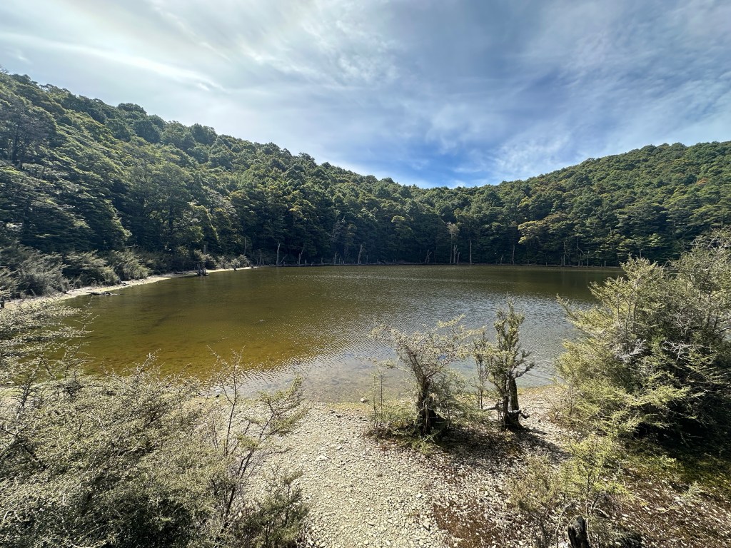 Friday 26 January – As promised in the trail notes, the tramp from Mid Wairoa to Tarn Hut was a steep climb up through forest, along ridges and then another less steep climb.