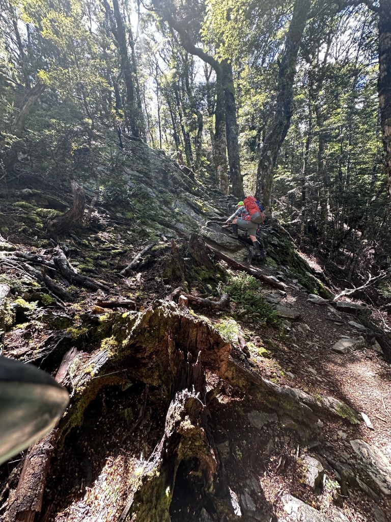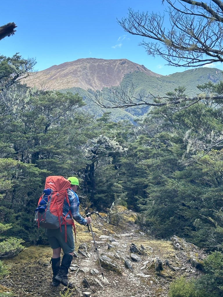 We then walked back into the bush along the ridgeline to Rintoul Hut.