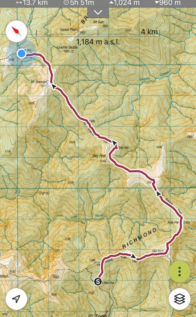 Hi Meredith. Not far from Richmond Saddle hut (club trip of May last year). Some of the terrain looks very similar. Enjoy your last few days on the trail!